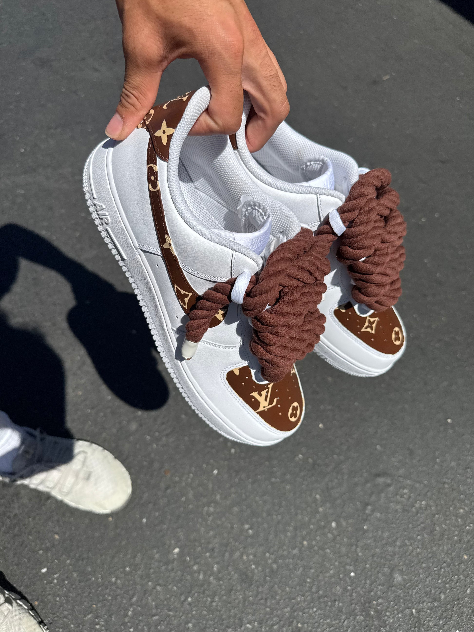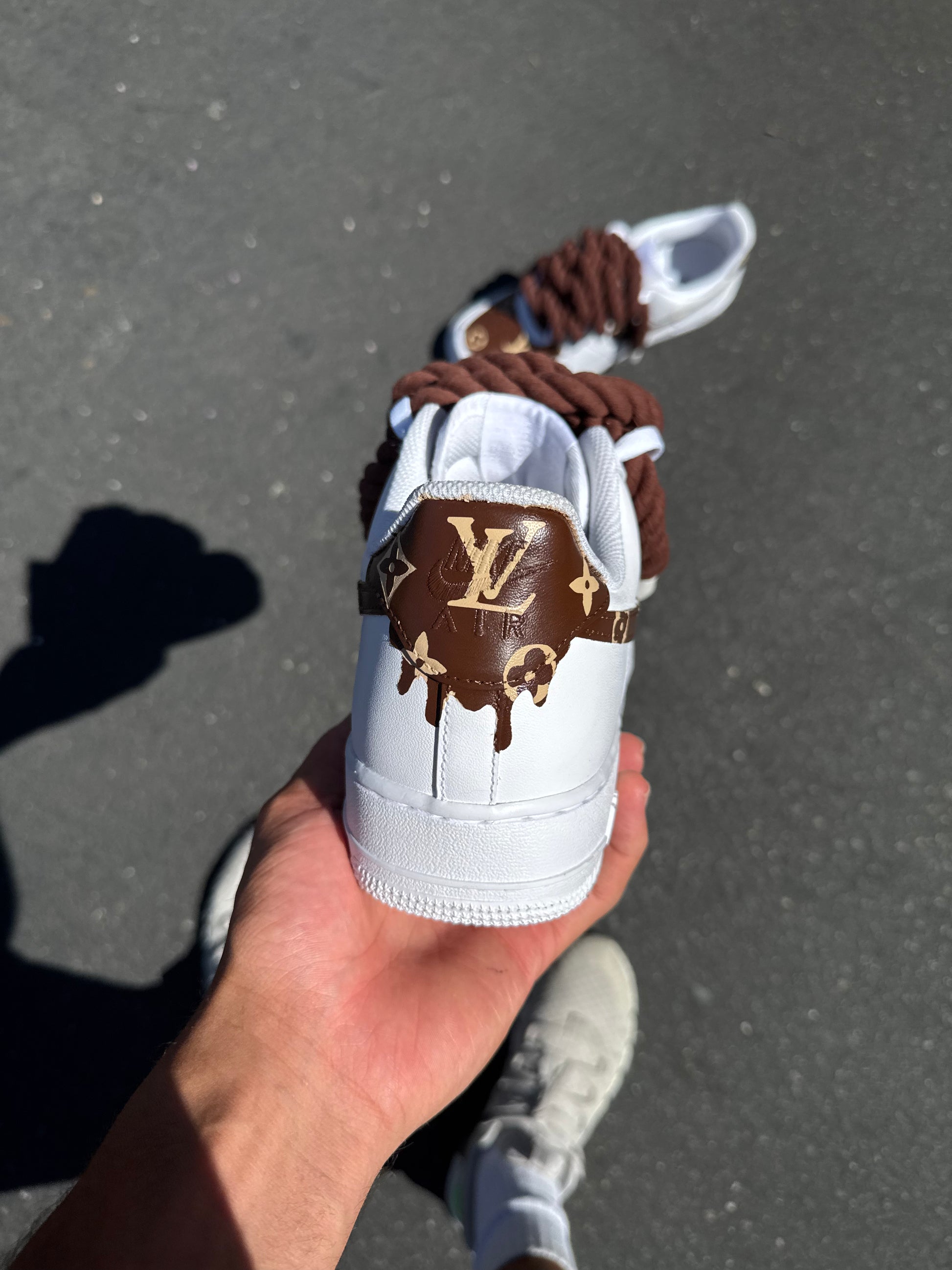 Step into style with these custom, hand painted sneaker featuring a luxury - inspired monogram pattern. Each pair is carefully crafted to order, ensuring a unique and eye-catching look.